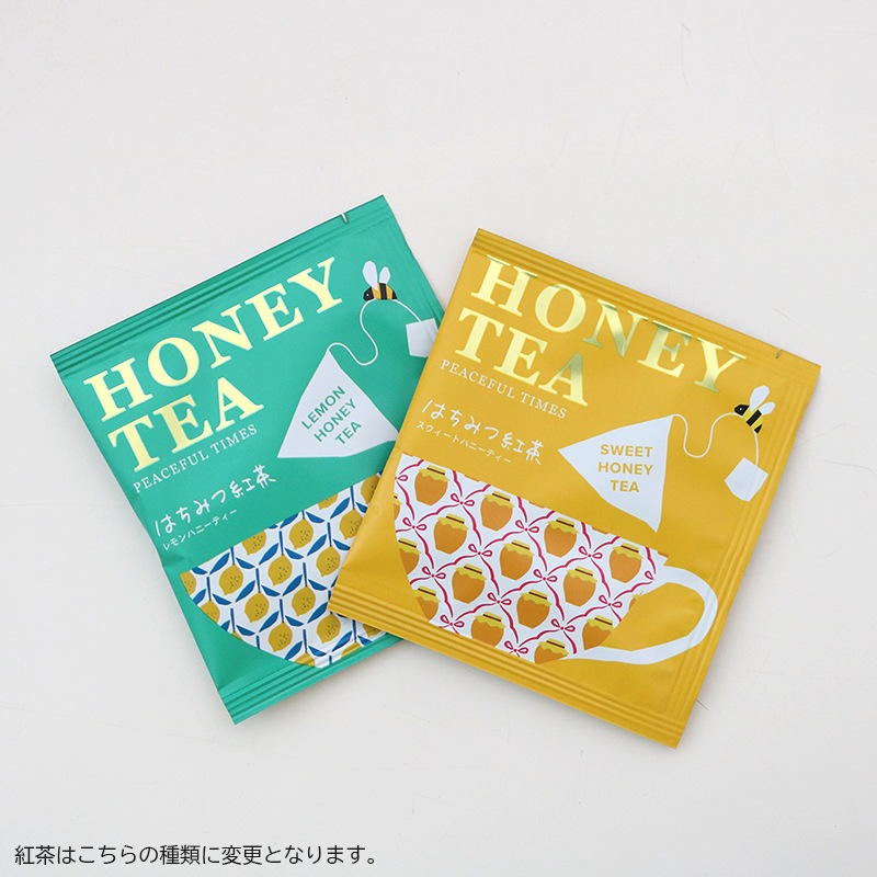 | 紅茶 | ※いずれか2種が入ります。 スウィートハニーティー ・内容量 1個(2g) ・原材料名 紅茶(スリランカ製造)、ハチミツパウダー/甘味料(ステビア)、香料 ・保管方法 直射日光・高温多湿を避けて保存してください。 レモンハニーティー ・内容量 1個(2g) ・原材料名 紅茶(スリランカ製造)、ハチミツパウダー/甘味料(ステビア)、香料 ・保管方法 直射日光・高温多湿を避けて保存してください。 ピーチハニーティー ・内容量 1個(2g) ・原材料名 紅茶(スリランカ製造)、ハチミツパウダー/甘味料(ステビア)、香料 ・保管方法 直射日光・高温多湿を避けて保存してください。 アップルハニーティー ・内容量 1個(2g) ・原材料名 紅茶(スリランカ製造)、ハチミツパウダー/甘味料(ステビア)、香料 ・保管方法 直射日光・高温多湿を避けて保存してください。 |